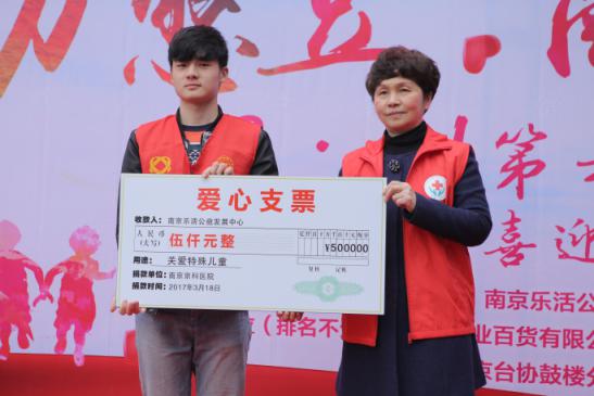 18日下午14:00主持人宣布活动开始,南京市慈善总会戴德新部长、南京市秦淮区民政局葛德华局长、南京台协鼓楼分会秘书长刘杰女士、江苏省智力残疾人及亲友协会副王凤刚主席、南京妇儿堂医院陈琳院长、南京乐活公益发展中心理事长吕强等领导和各界嘉宾参加了本次活动。